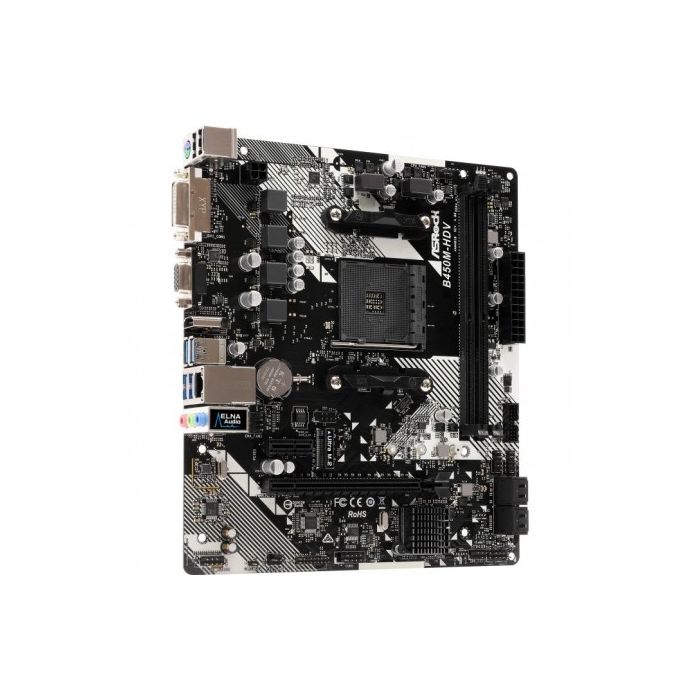 AMD AM4 Socket, 2 DIMMs, Supports DDR4 3200+(OC), 1 PCIe 3.0 x16, 1 PCIe 2.0 x1, Graphics Output : HDMI, DVI-D, D-Sub, 7.1 CH HD Audio (Realtek ALC887 Audio Codec), ELNA Audio Caps, 4 SATA3, 1 Ultra M.2 (PCIe Gen3 x4 SATA3), 6 USB 3.1 Gen1 (2 Front, 4 Rear), Realtek Gigabit LAN