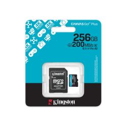 Kingston microSD 256GB CanvasGoPlus;r/w:200MB/s/160MB/s,with adapter