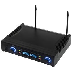 Set 2 bežična mikrofona i prijemnik , domet do 100 met. ( na otvorenom ), radna frekvencija 518 - 766 MHz, audio izlaz 0 - 500 mW, osjetljivost 105 dB, sučelje XLR / Ø6.3 mm jack, dimenzije: mikrofon Ø55 / 45 x 240 mm, prijemnik 210 x 45 x 140 mm, napajanje : mikrofon 2 x AA baterije ( nisu uključene u pakiranje ), prijemnik 100 - 240 V ~