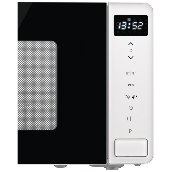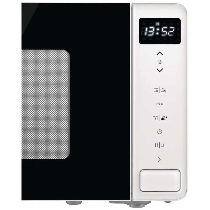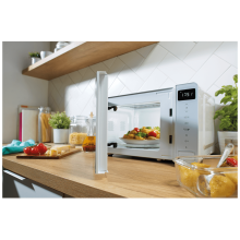 Mikrovalna pećnica, snaga 800 W, volumen pećnice 20 litara, 5 nivoa mikrovalne snage, 1 infra grijač, snaga grila 1000 W, standardna tehnologija proizvodnje mikrovalova, rotirajuči stakleni tanjur promjera 27 cm, rešetka za gril, elektronsko upravljanje na dodir, Time display, SmartControl - pametno upravljanje, mogućnost isključivanja display-a, mogućnost isključivanja zvučnog signala, timera 60 (min).