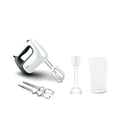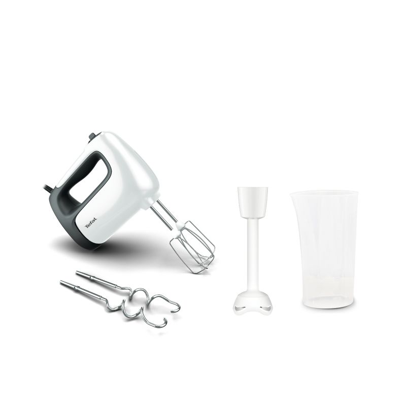 Tefal ručni mikser Prepmix +, HT461138.Snažan motor od 500 W, 5 brzina i turbo postavka brzine, 2 metlice, 2 kuke za tijesto, plastični nastavak za štapni mikser.