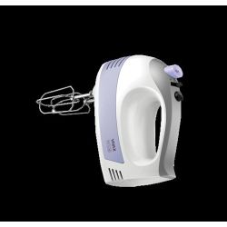 Ručni mikser HM-400WP ima ergonomski dizajn i bijele je boje. Sa snagom od 400W i pet različitih brzina vrtnje, ovaj mikser zadovoljit će sve vaše potrebe u kuhinji. Postoji i turbo prekidač za posebno brzo okretanje miješalica. Uz uređaj dolaze miješalice te kuke za miješanje tijesta.