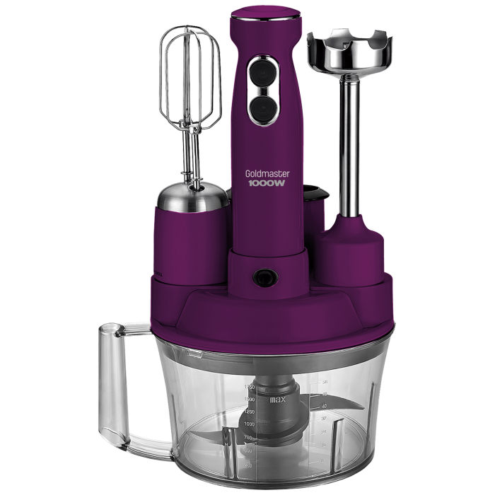 Goldmaster Štapni mikser sa posudom, 5u1, 1000 W, Multipraktik - GM-7239M Elena Max Purple
