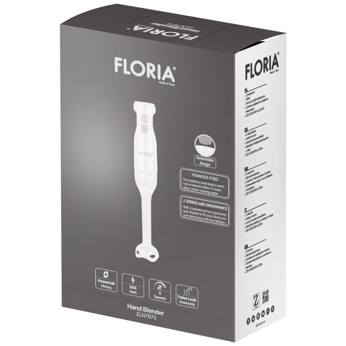 Štapni mikser Floria, ZLN7973, snaga motora 250 W, dvije brzine rada, oštrice od nehrđajućeg čelika, promjenjiva brzina za mućenje i miješanje