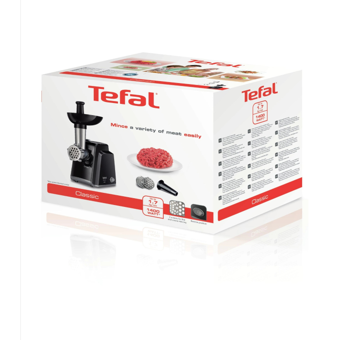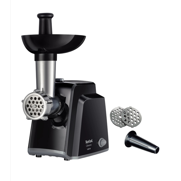 Tefal Link Plus mašina za mljevenje mesa,NE105838.Snaga: 1400W, 1.7 kg u minuti, obrnuti način rada, 2 rešetke i samooštreći nož.Snažan i kompaktan aparat sa nastavkom za kobasice.