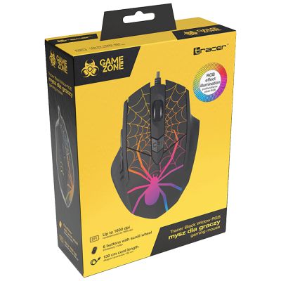 Pridružite se igri sa svojim potpuno novim mišem Tracer Black Widow. Ergonomski i lagani dizajn, pozadinsko osvjetljenje u duginim bojama i osjetljivi optički senzor, zajedno s jedinstvenim izgledom, učinit će Tracer Black Widow vašim omiljenim igračkim partnerom. To je sve što vam je potrebno za vašu virtualnu avanturu. Multimedijski miš Tracer Black Widow dio je naše popularne linije proizvoda za igre Tracer GAMEZONE namijenjene zahtjevnim igračima koji očekuju napredne funkcije i parametre od svoje opreme za igre. Zahvaljujući visokoj kvaliteti proizvoda, uređaji linije GAMEZONE jamče dug vijek trajanja čak i uz intenzivnu upotrebu.