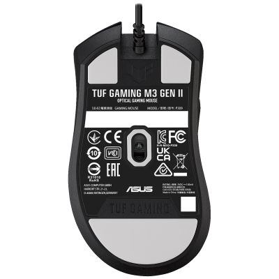 ASUS TUF Gaming M3 Gen II je ultralak žičani gaming miš namijenjen igračima, posebno onima koji cijene brzinu, preciznost i udobnost tokom dugih sesija igranja. Miš teži samo 59 g i ima ergonomski dizajn za desnu ruku koji omogućava lako upravljanje i brze pokrete bez napora. Opremljen je optčkim senzorom s do 8000 DPI koji nudi precizno praćenje pokreta u kombinaciji s 1000 Hz polling rate-om za brzu reakciju u igrama. TUF Gaming M3 Gen II ima IP56 otpornost na prašinu i vodu kako bi izdržao svakodnevnu upotrebu, a ASUS Antibacterial Guard dodatno štiti površinu od bakterija. Miš nudi šest programabilnih tipki, Aura Sync RGB osvjetljenje i tri interne memorijske postavke koje možeš prilagoditi kroz Armoury Crate softver.