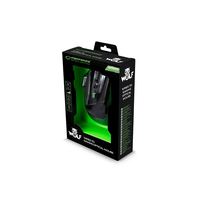 Miš ESPERANZA GAMING WOLF 7D MX201, green, 2400dpi, double-click, ergonomic, EGM201G