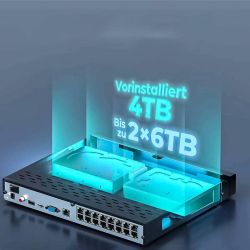 Izboljšajte svojo varnost s 16-kanalnim PoE NVR Reolink, ki je opremljen z vgrajenim trdim diskom 4TB za snemanje 24/7, ki nikoli ne zamudi nobenega utripa. Izkusite jasnost ločljivosti do 16 MP, ki zagotavlja zajemanje vsake podrobnosti. Tehnologija PoE ponuja nastavitev plug-and-play. Z oddaljenim dostopom lahko upravljate svoj sistem od koder koli, lokalni dostop pa zagotavlja gledanje virov v živo brez povezave doma. 2 x SATA vmesnik (1 x 4TB HDD vključen)