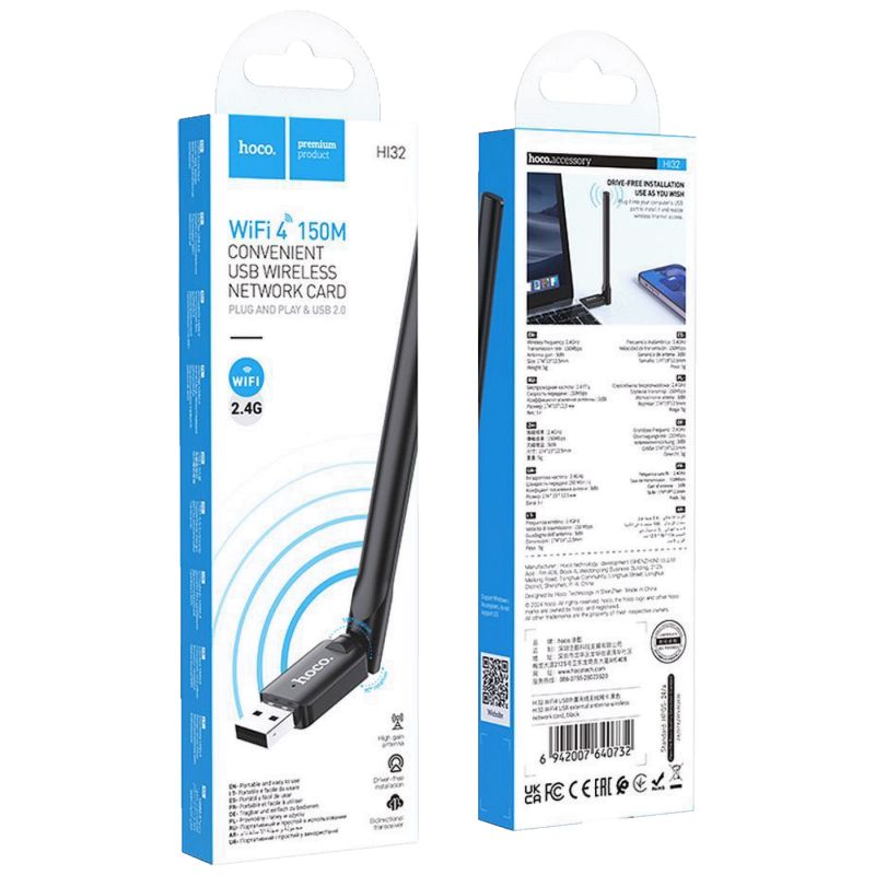 HOCO HI32 je kompaktna mrežna kartica koja omogućuje brzo i stabilno povezivanje na bežičnu mrežu.