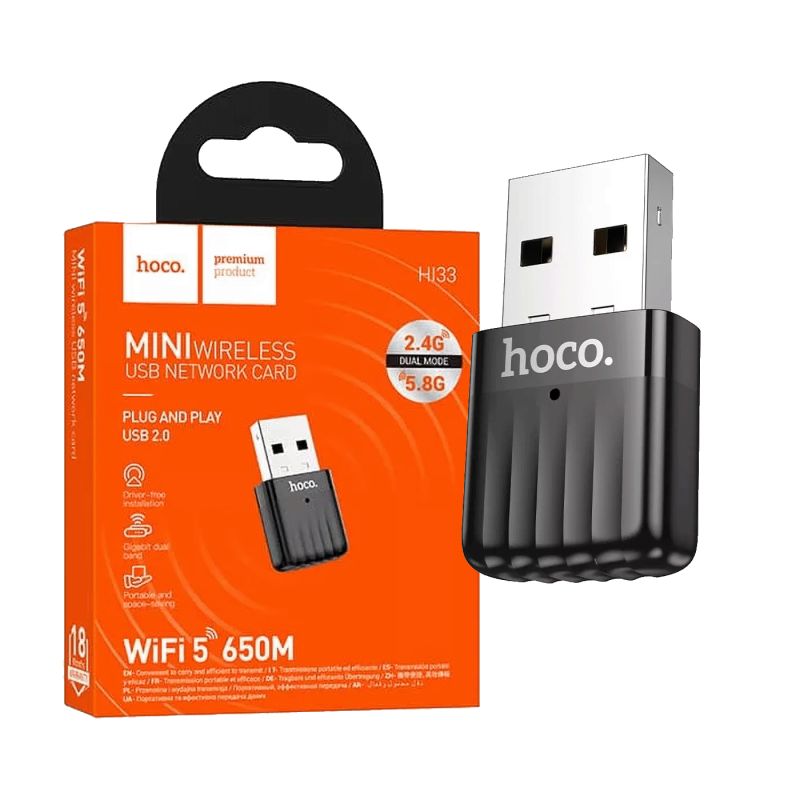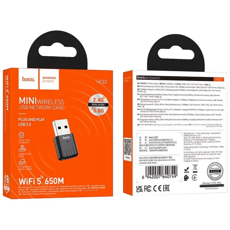 USB adapter Wi-Fi5 HOCO HI33, USB2.0, 650 Mbps