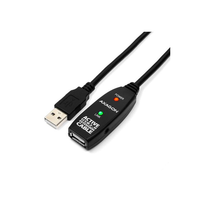 AXAGON ADR-210 USB2.0 Active Extension/Repeater kabel, Vrsta kabla USB, Konektori USB 2.0 AM-AF aktivni produžni kabel, AC adapter opcionalno (AC-5V2A), Duljina 10 m, Boja crni