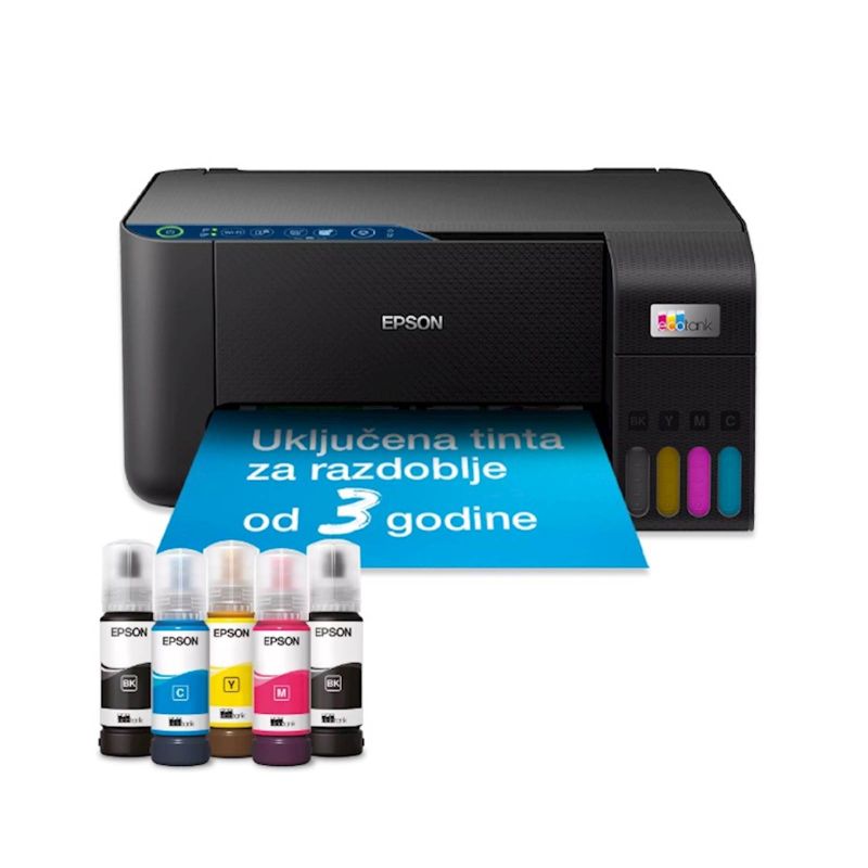 EcoTank omogucuje ispisivanje kod kuce bez briga – spremnici s tintom iznimno visokog kapaciteta omogucuju nadopunjavanje bez nereda, a poseban dizajn bocica je osmišljen tako da se mogu umetnuti samo ispravne boje. S prednjim spremnikom za tintu na kojem je lako vidjeti kada je potrebno dodatno punjenje. Sa stražnjim pretincem za 100 listova papira, ispisom fotografija bez obruba (do 10 x 15 cm) i brzinama ispisa do 10 stranica u minuti, možete s lakocom ubrzati razlicite zadatke.