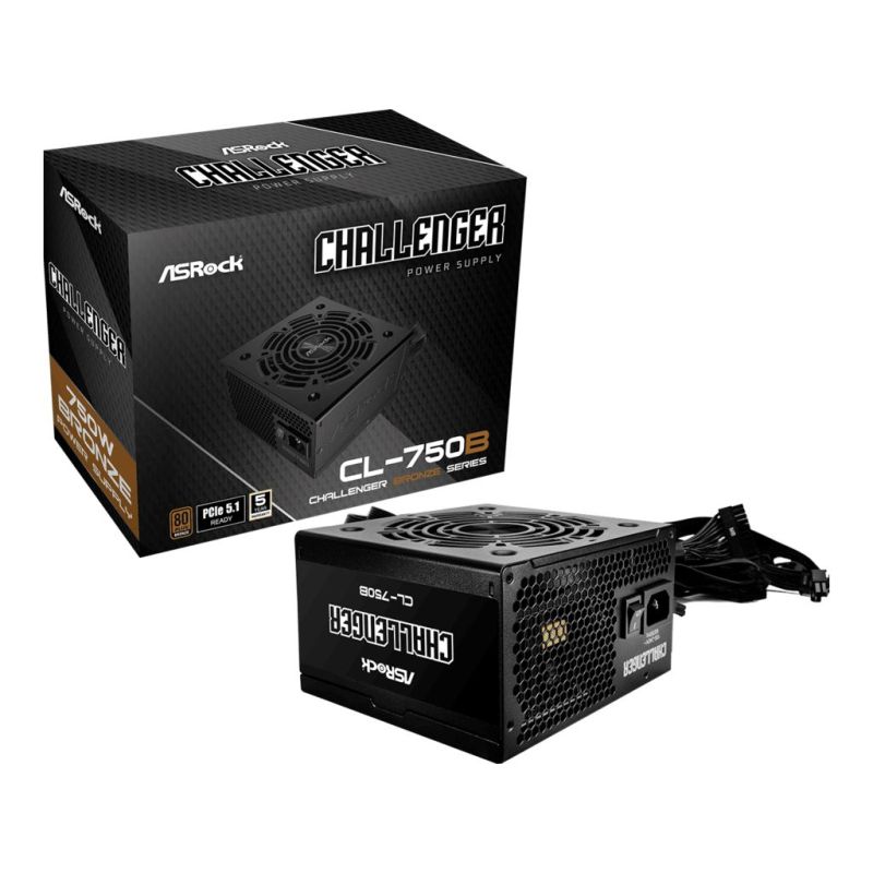 ASROCK PSU 750W, CL-750BChallenger,12cm fan,80+ BronzePCIe 5.1 Ready, 24pin Sleeved