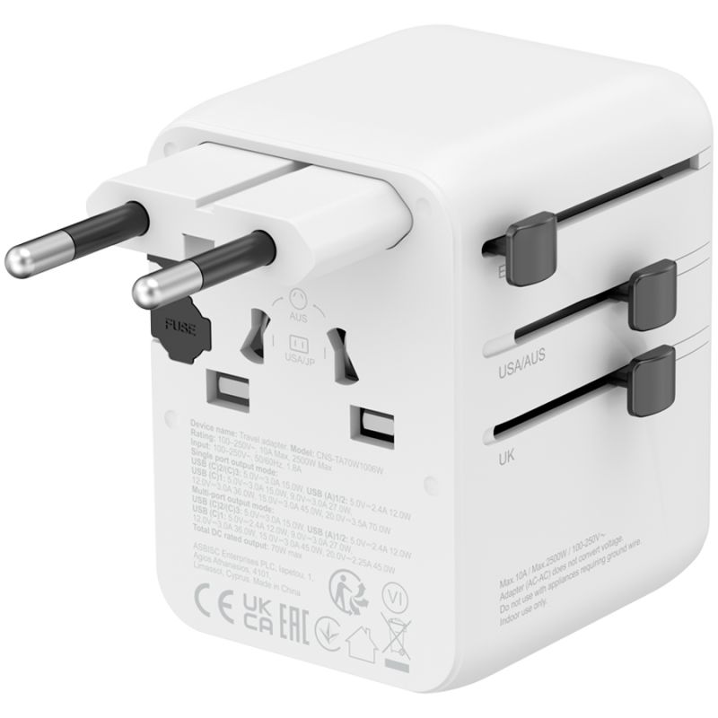 CANYON Travel Adapter OnTour 70 EU/UK/US/AUS 70W White
