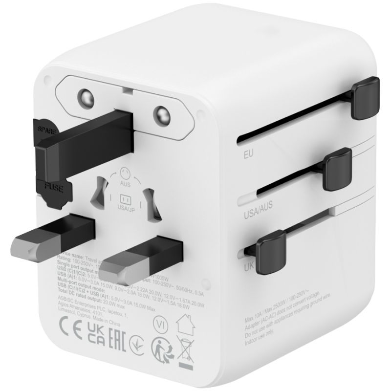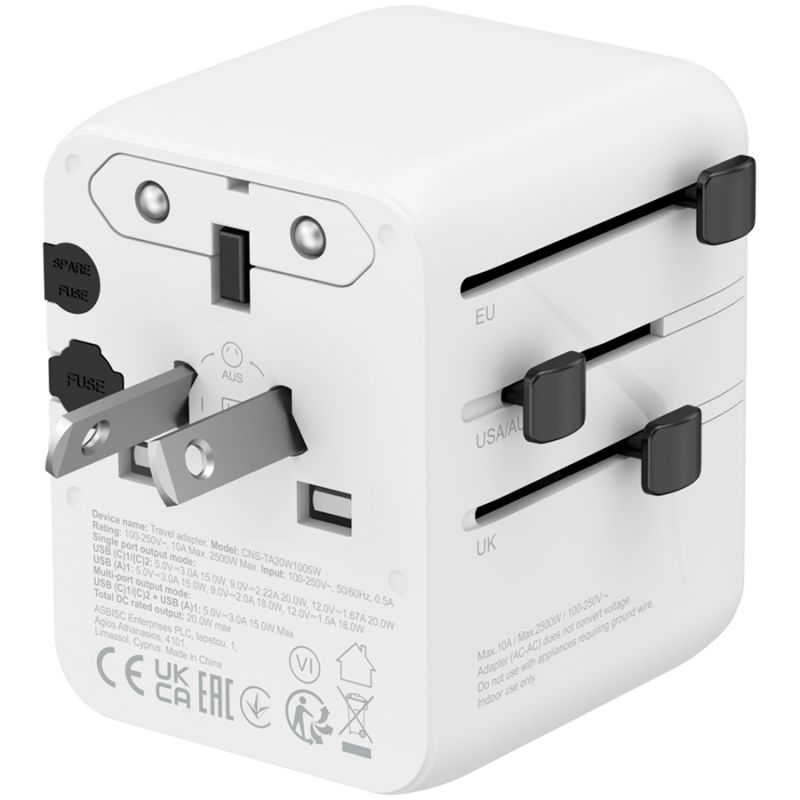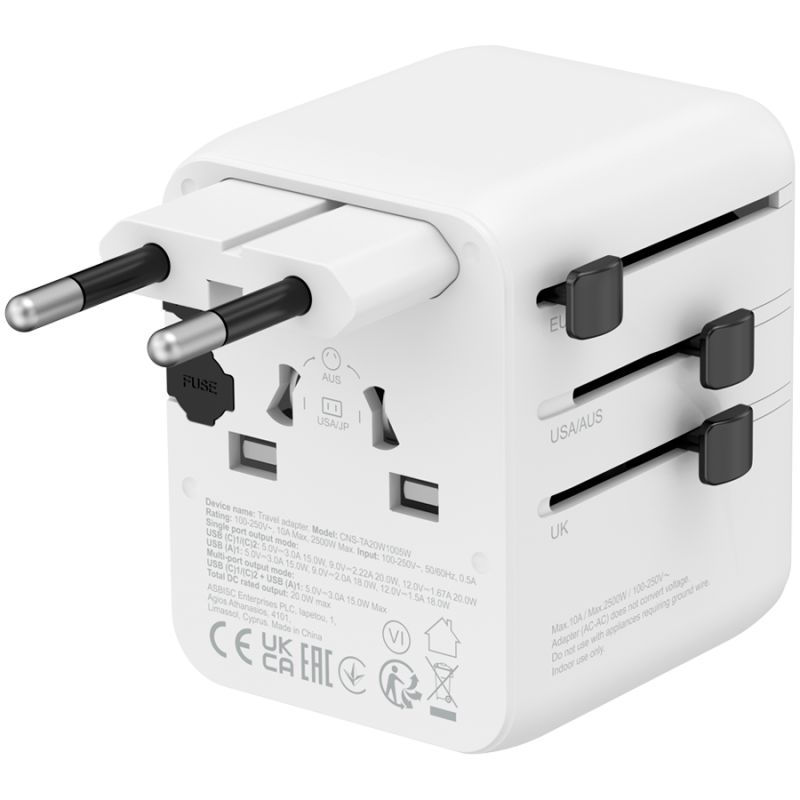 CANYON Travel Adapter OnTour 20 EU/UK/US/AUS 20W White