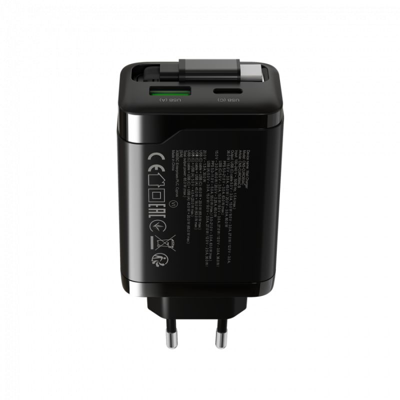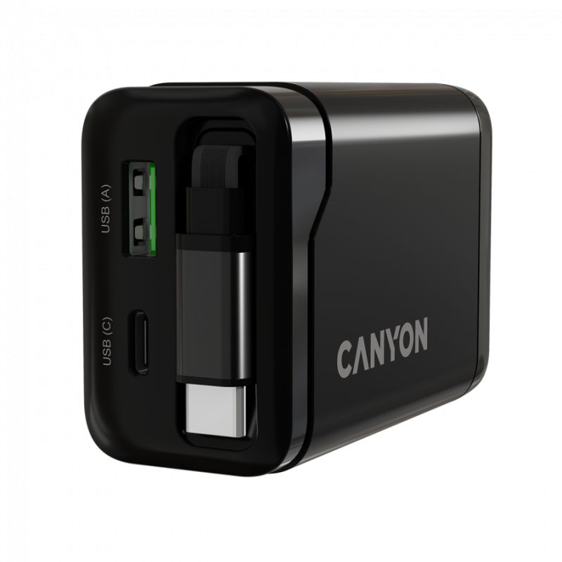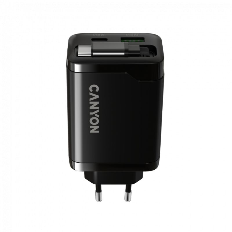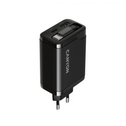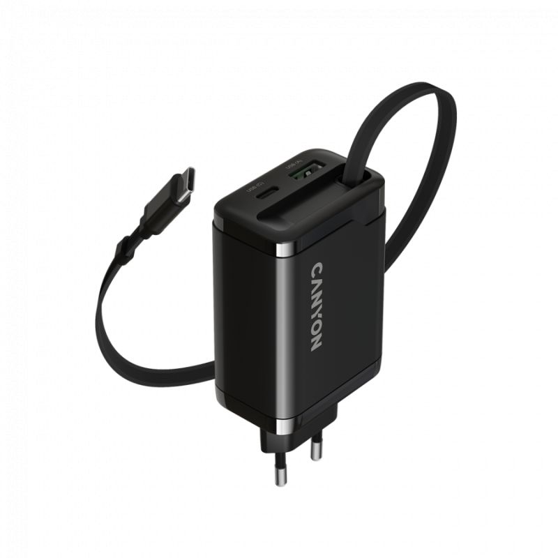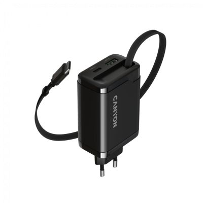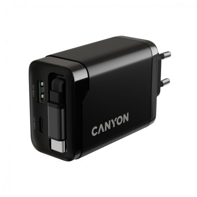CANYON charger OnCharge 65RC Build-In Cable USB-C 65W 1xPD 1xQC EU Black