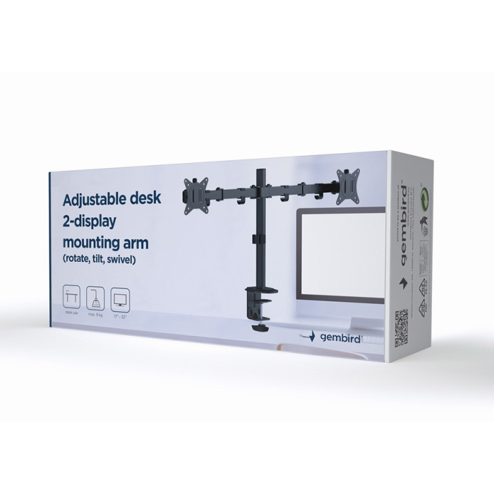 NOSAČ ZA DVA MONITORA GEMBIRD MA-D2-01, montaža na stol, (rotate, tilt, swivel), 17”-32”, up to 9 kg