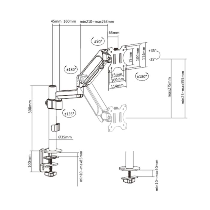 NOSAČ ZA MONITOR GEMBIRD MA-DA1P-01, montaža na stol, (tilting), 17”-32”, up to 9 kg