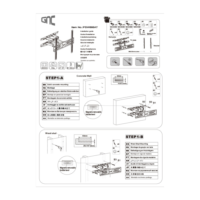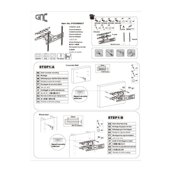 Zidni nosač GNC PSW866AT 32"-55" 400x400 full motion max 30kg