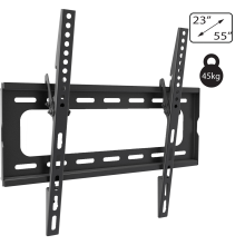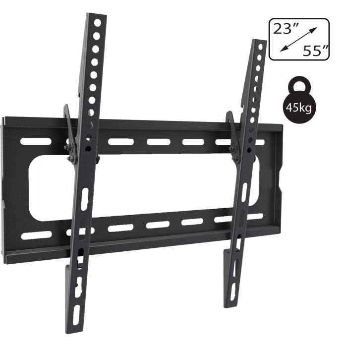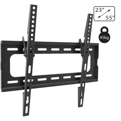 Zidni nosač za TV prijemnike od 23 " do 55", maximalno opterećenje 45 kg, udaljenosto od zida 24 mm, tilt 0-15°, VESA 100x100, 200x100, 200x200, 300x200, 300x300, 400x200, 400x300, 400x400, jednostavno za montažu i rukovanje, sadrži set vijaka, libelu i upute za uporabu
