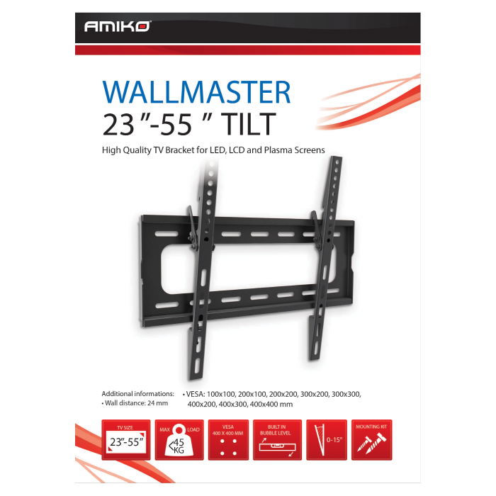 Amiko Nosač zidni za TV prijemnik 23" - 55", 45 kg, 2D - Wallmaster 23-55 Tilt