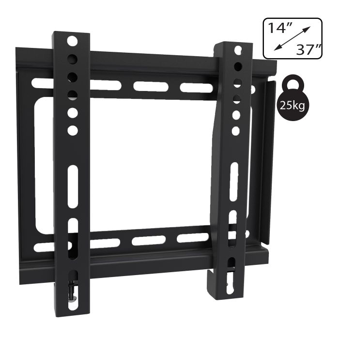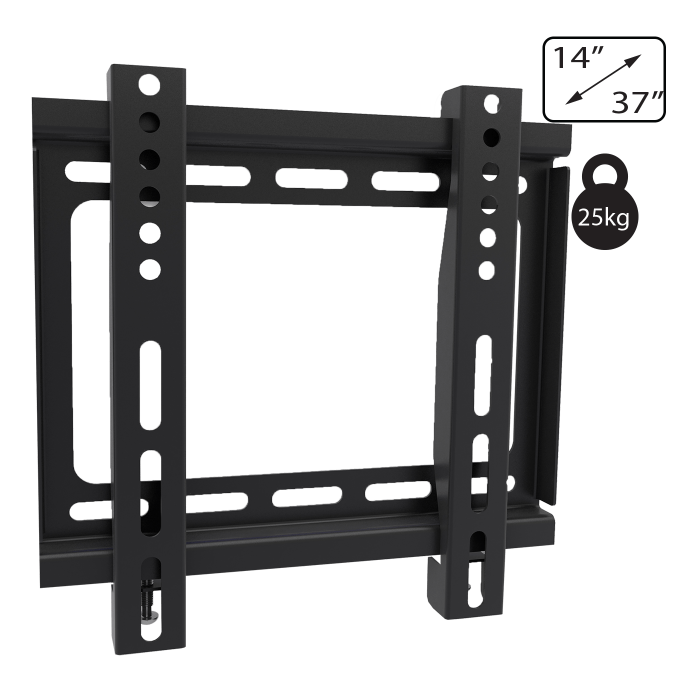 Zidni nosač za TV prijemnike od 14 " do 37", maximalno opterećenje 25 kg, udaljenost od zida 23,5 mm, VESA 100x100, 200x100, 200x200, jednostavno za montažu i rukovanje, sadrži set vijaka, libelu i upute za uporabu