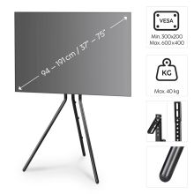 Uz naš TV nosac dobijate maksimalnu fleksibilnost prilikom dizajniranja vaše dnevne sobe: postavite svoj elegantni TV ravnog ekrana ispred i u sredinu ili ga diskretno stavite u pozadinu. Minimalisticki dizajn cini podno postolje za TV elegantnim dodatkom koji stvara prostor! Moderan i minimalisticki dizajn nosac cini vaš TV i postolje posebnim kucnim dodatkom Individualna integracija koja štedi prostor u vašem kucnom pejzažu Obujmice za kablove za uredno upravljanje kablovima sa vucnim rasterecenjem