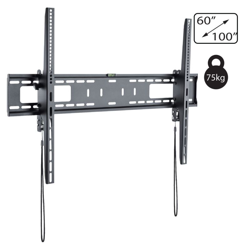 Zidni nosač za TV prijemnike 60" - 100", maximalno opterećenja 75 kg, VESA 200 x 200, 300 x 200, 300 x 300, 400 x 200, 400 x 300, 400 x 400, 600 x 400, 600 x 600, 800 x 600, 900 x 600 mm, jednostavna montaža, fiksno pozicioniranje.