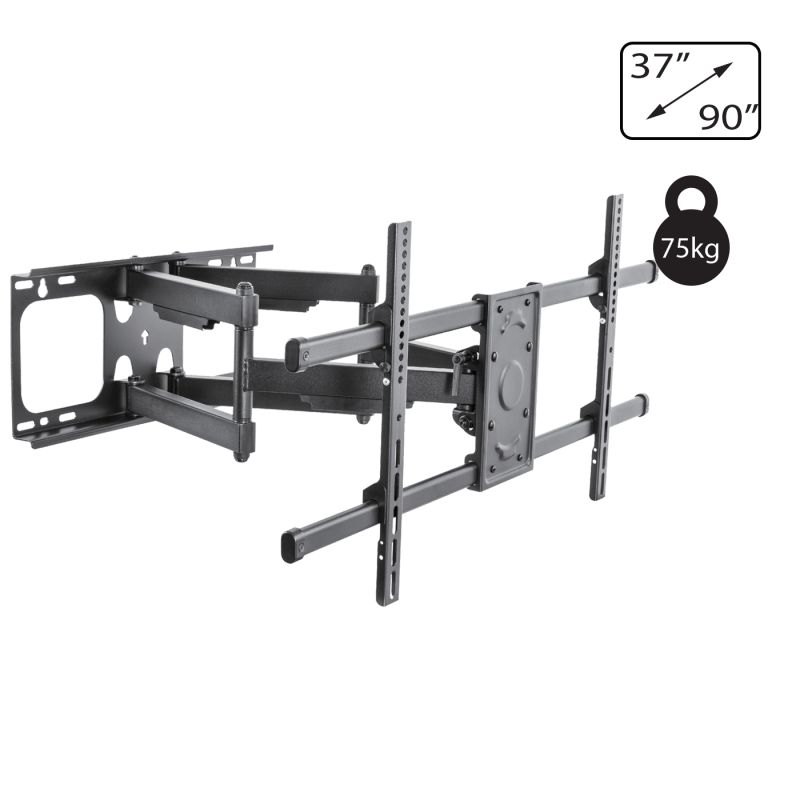 Zidni nosač za TV prijemnike 37" - 90", maximalno opterećenja 75 kg, udaljenost od zida 6.9 - 63.5 cm, VESA 200x200, 300x300, 400x200, 400x400, 600x400, 800x400 mm, jednostavna montaža, fiksno pozicioniranje.