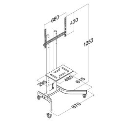 Visina televizora i police za pohranu se mogu podesiti na postolju. Maksimalna visina i širina bez TV-a je 1,25 metara (visina) i 0,68 metara (širina).