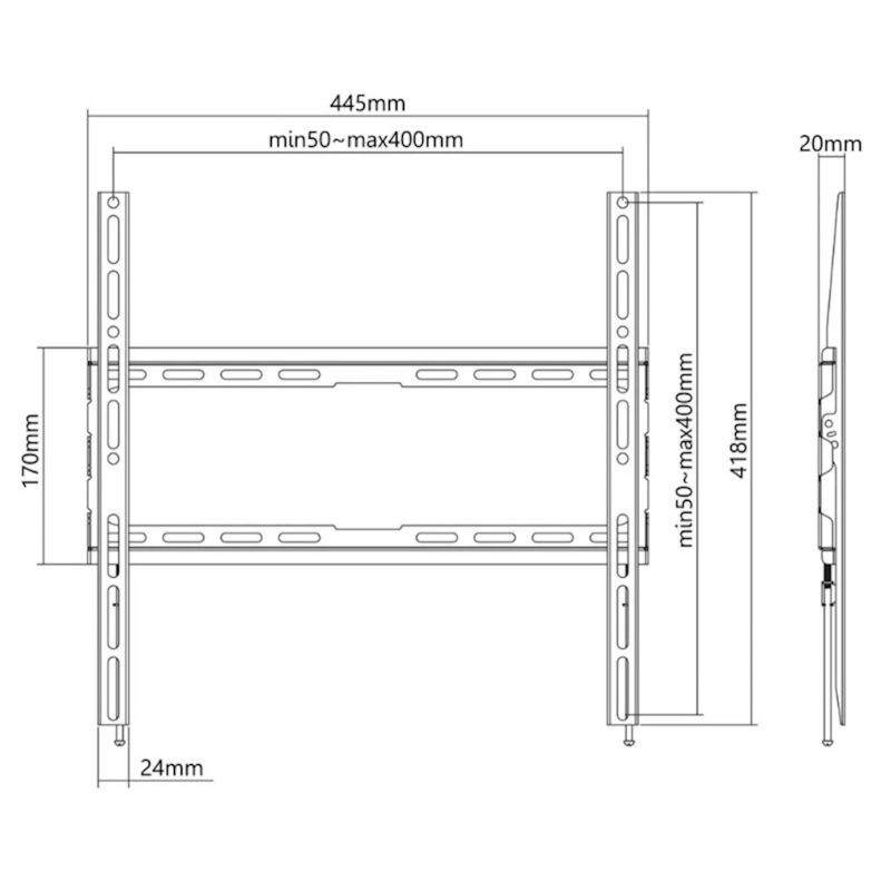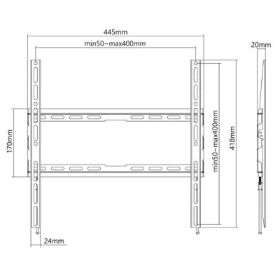 * Podržava jedan ravni televizor od 32" do 70" težine do 45 kg (100 lbs.) * Drži TV samo 20 mm (0,8 in.) od zida za gotovo ravnu, blizu zida postavljenu instalaciju koja naglašava tanku, modernu siluetu televizora * Teška celicna konstrukcija s praškastim premazom * Niskoprofilna, fiksna instalacija; idealno za kucne, uredske i komercijalne primjene * Zadovoljava VESA standarde od 75x75 do 400x400