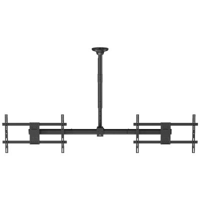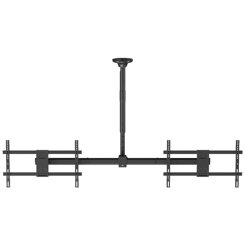 Maclean MC-111-B je robustan stropni nosač koji omogućava istovremeno montiranje dva televizora — idealan za salone, trgovine, recepcije ili bilo koje prostore gdje je poželjan prikaz s više ekrana.