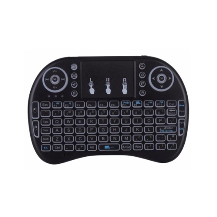 Bluetooth + 2.4GHz wireless dual mode, touchpad, voice search, RGB backlit, rechargeable battery (1020mAh), USB dongle and cable included
