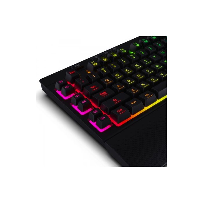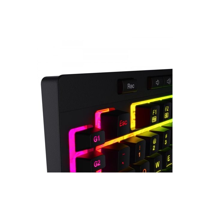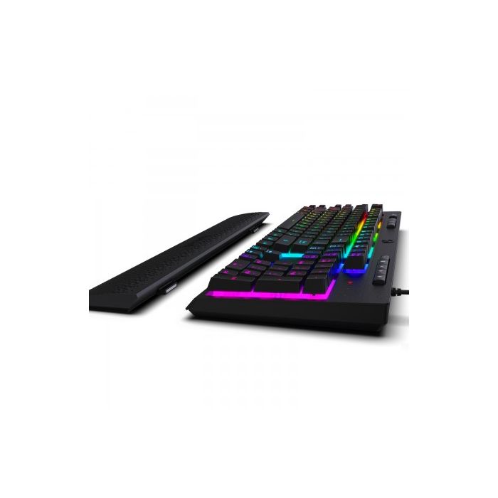 26 anti-ghost keys, 6 on-board macro buttons, 8 multi-media keys, True RGB backlight, Quiet and media profile control, Comfortable detachable wrist-rest, Software available for professional gamer