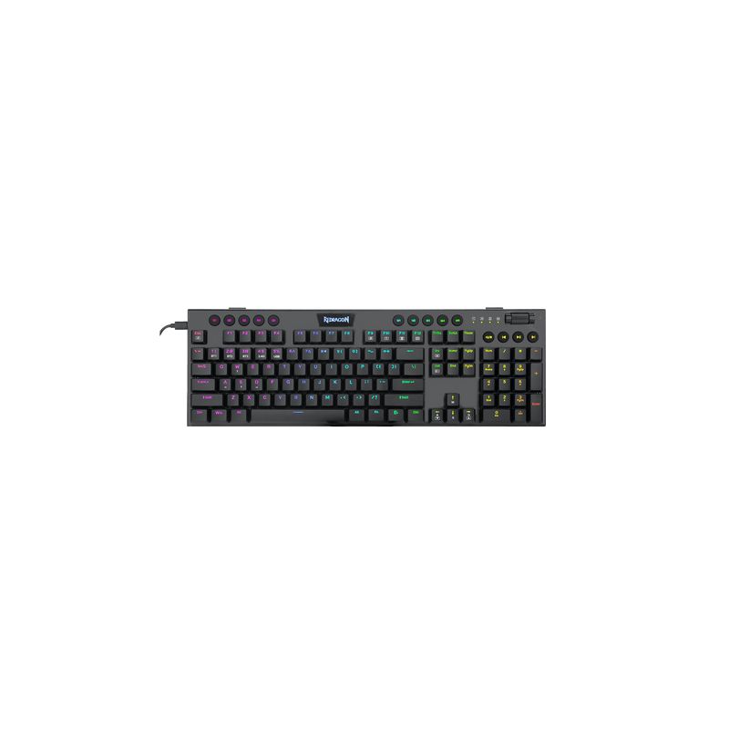 Blue Switch, Wired, Layout Eng, Mechanical, Ultra-Thin Designed Wired Gaming Keyboard w/Low Profile Keycaps, Dedicated Media Control, RGB 16.8 million colors backlighting, USB-A to USB-C, 104 Keys (Full Rollover)