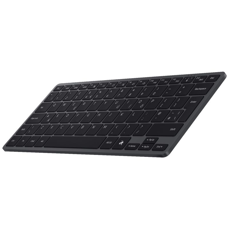 Samsung Smart Keyboard Black (EJ-B7800UBEGWW) je bežična Bluetooth tastatura dizajnirana za produktivno i udobno kucanje na raznim uređajima kao što su pametni telefoni, tableti, računari i drugi uređaji sa Bluetooth podrškom. Tastatura nudi prirodan osjećaj kucanja s hodom tipki od 1,0 mm i razmakom tipki od 19 mm, što je čini pogodnom za cjelodnevnu upotrebu bez umora zglobova. Tanak i lagan dizajn s aluminijskom završnom obradom daje joj elegantan izgled i čvrst osjećaj. Ugrađeni AI Short Key omogućava brzo pokretanje pametne pomoći kao što su Google Gemini, Bixby ili Copilot jednim dodirom. Tastatura može biti uparena s do tri uređaja istovremeno i lako se prebacivati između njih, što je idealno za multitasking u ekosistemu Samsung Galaxy uređaja. Baterija je dizajnirana da traje dugo – do 2 godine s dvije CR2032 baterije.