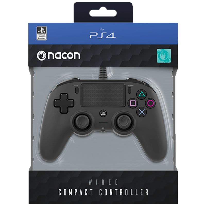 NACON-ov Wired Compact Controller službeno je licenciran za PS4™ konzole i može se pohvaliti nizom bitnih karakteristika, uključujući dodirnu tablu, vibracione motore i LED indikator statusa playera. Takođe uključuje dugmad za akciju sa PlayStation® simbolima i bojama, kao i dugmad SHARE, OPTIONS i PS.