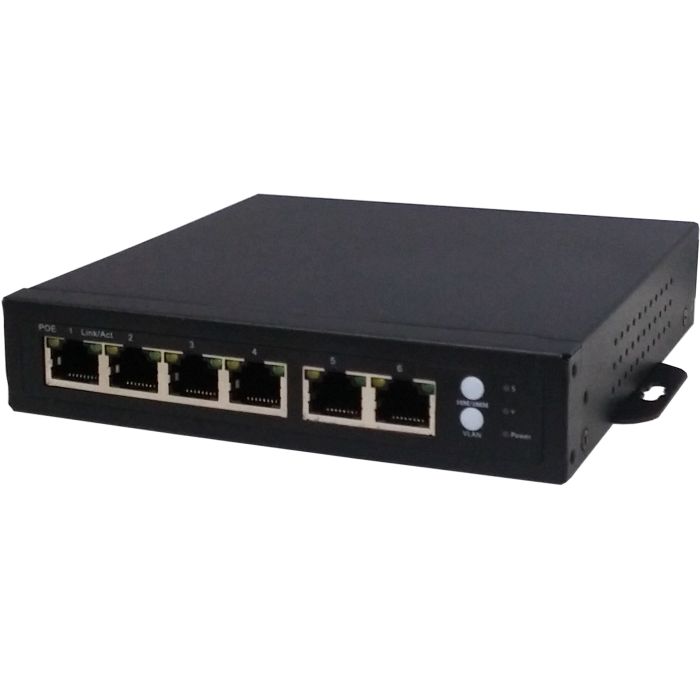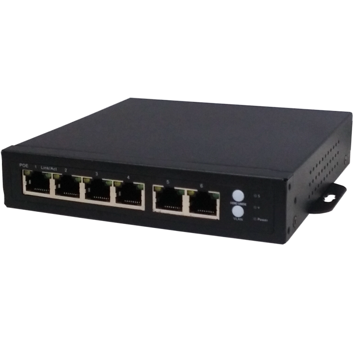 6 portni mrežni 10/100 switch , 4 PoE port, RJ 45, max 75W , napajanje AC 100 - 240V, LED indikacija. Mogućnost ugradnje u rack ormar