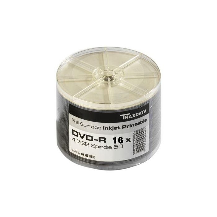 Traxdata DVD printabilni mediji omogućavaju ispisivanje teksta inkjet printerom izravno na medij s bijelim premazom, nema neiskorištenog prostora oko središnjeg prstena tako da se može ispisivati sve do samog središta. Medij je idealan za arhiviranje podataka, umnožavanje, mrežni back up, multimedijalne prezentacije te rad s digitalnim video/foto materijalom. Ekonomično pakiranje: spindle 50 kom, kapacitet 4.7 GB, Brzina 16X, bijeli premaz.