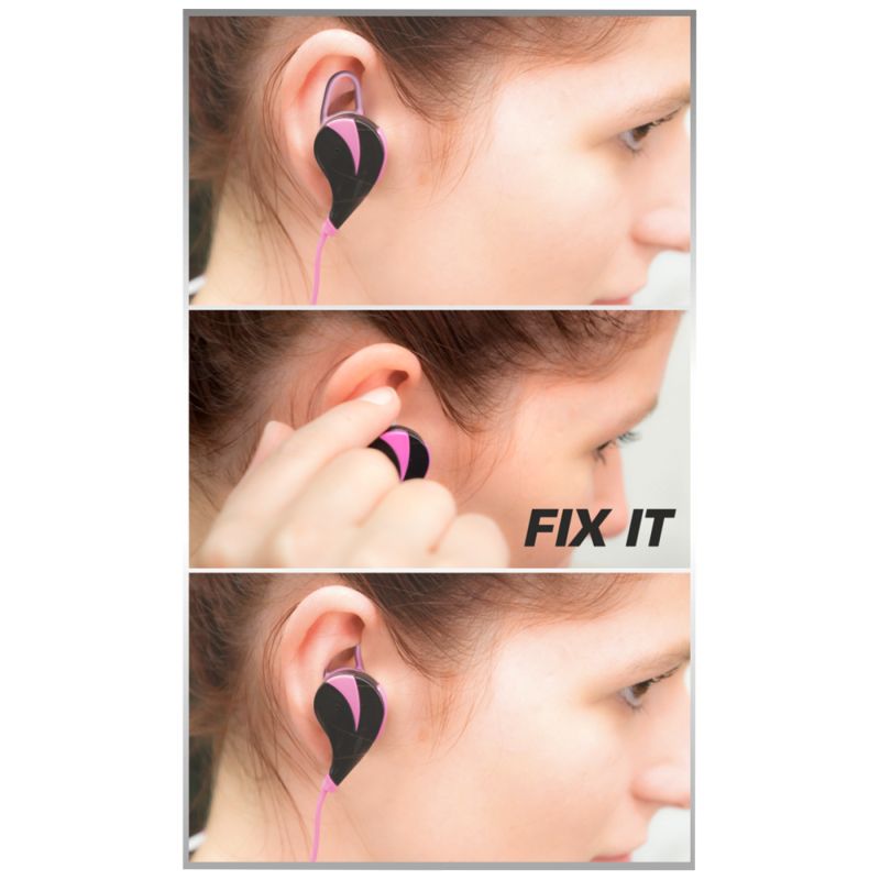 Bežične slušalice, Bluetooth, sa mikrofonom, dizanirane za upotrebu uz sportske aktivnosti, kristalno jasan HiFi stereo zvuk, Bluetooth komunikacija sa dva uređaja istovremeno, BT ver 4.0, domet do 10 metara, ugrađen mikrofon, telefonski poziv, ugrađena Li-Po baterija 3,7V / 60mAh, frekventni opseg 50-20000 Hz, zamjenjivi gumeni ulošci, boja pink