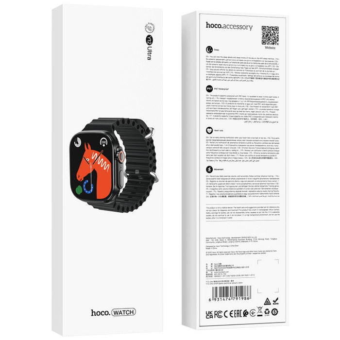 hoco. Sat pametni, 1.96" zaslon, Dual Bluetooth, IP67 - Y12 Black