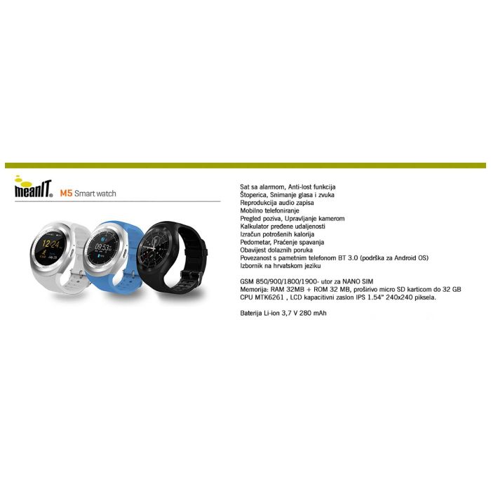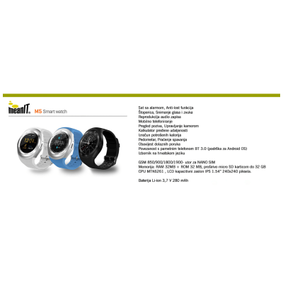 MeanIT Sat pametni, SIM, SMS, BT v3.0, plavi - M5 Plavi