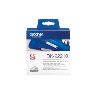 Postojana bijela papirna traka Brother DK-22210 širine 29 mm, dužine 30,48 m koristi izravnu tehnologiju toplinskog ispisa kako bi stvorila naljepnice za pakete, omotnice i policu. S DK22210 možete uživati u fleksibilnosti izrade bilo koje vrste naljepnice prilagodene dužine.