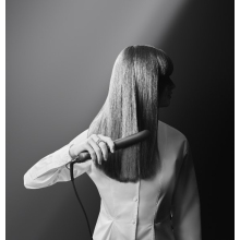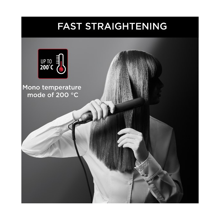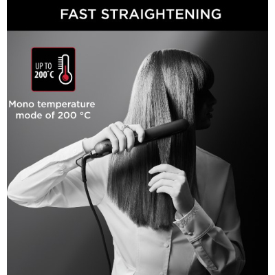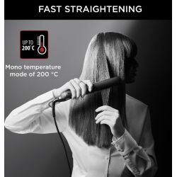 Rowenta-Karl Lagerfedl Easyliss SF161LFO pegla za kosu.Bezbrižno oblikovanje uz mono temperaturni način za brzu izvedbu i jednostavna kontrola.Keramička turmalinska prevlaka za uglađenu i sjajnu kosu.Sistem plutajućih ploča.