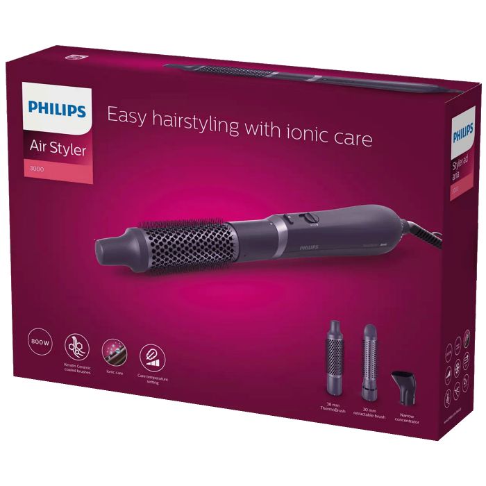 Suho i stilizirano u isto vrijeme. AirStyler 3000 iz Philipsa vam omogućava da postignete prekrasan, prirodan stil uz pružanje više nege i sjaja. 3 nastavka su pogodna za dugu i kratku kosu i omogućavaju udobno oblikovanje.