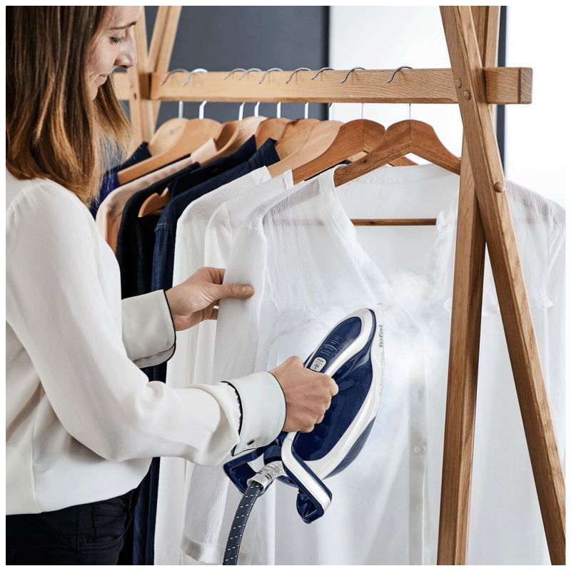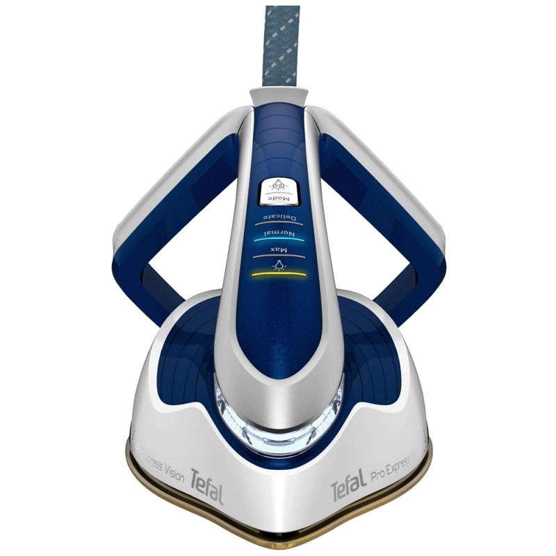 Pegla sa parnom postajom, Tefal Pro Express Vision, snaga 3000W, dodatni udar pare 180 g/min., udar pare 700 g/min., pritisak pare 8.1 bar., vertikalni udar pare, 3 elektronske postavke pare i temperature, vrijeme zagrijavanja 2 min.
