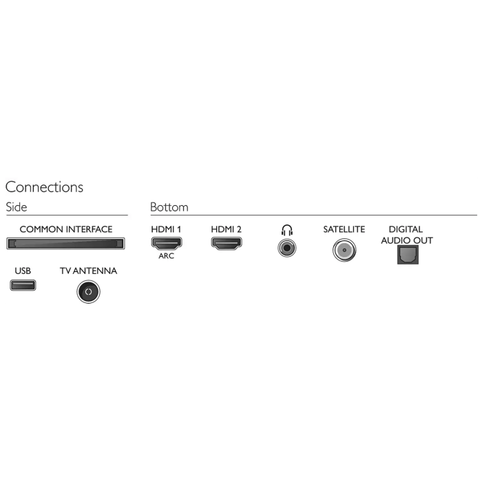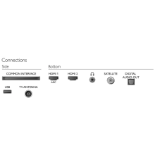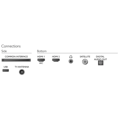 Povezivost: HDMI x 2, USB x 1, satelitski priključak, CI+, digitalni audioizlaz ( optički ), izlaz za slušalice, sevisni priključak.