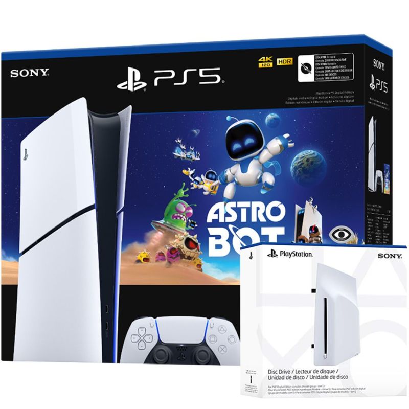 PlayStation 5 Slim Digital Edition (D-chassis) + PlayStation Disc Drive + Astro Bot