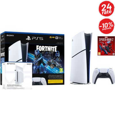 PlayStation 5 Slim Digital Edition (D-chassis) + PlayStation Disc Drive + Fortnite + Marvel’s Spider-Man 2